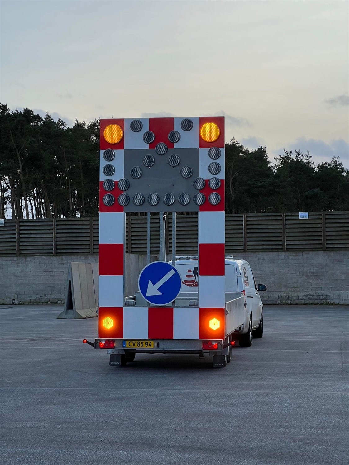 En alsidig tavlevogn til skiltning på både motorvej, landevej m.fl i forbindelse med vejarbejde.