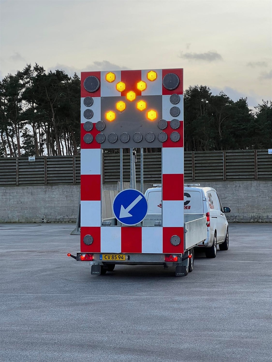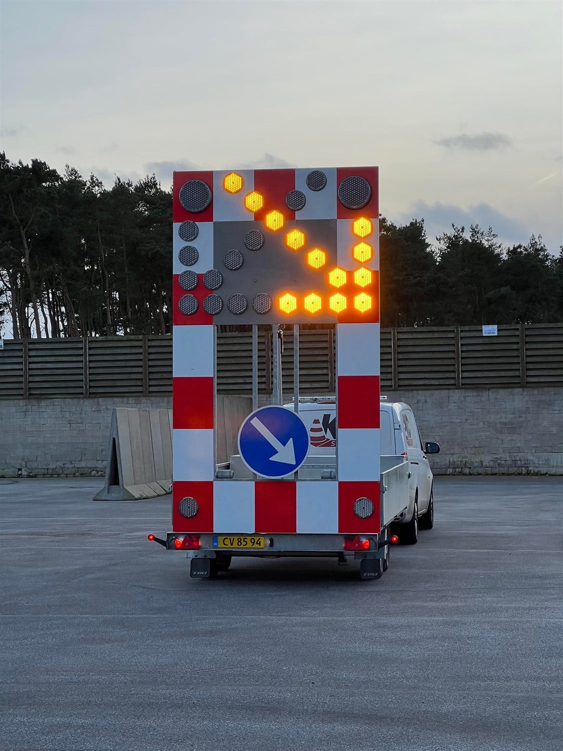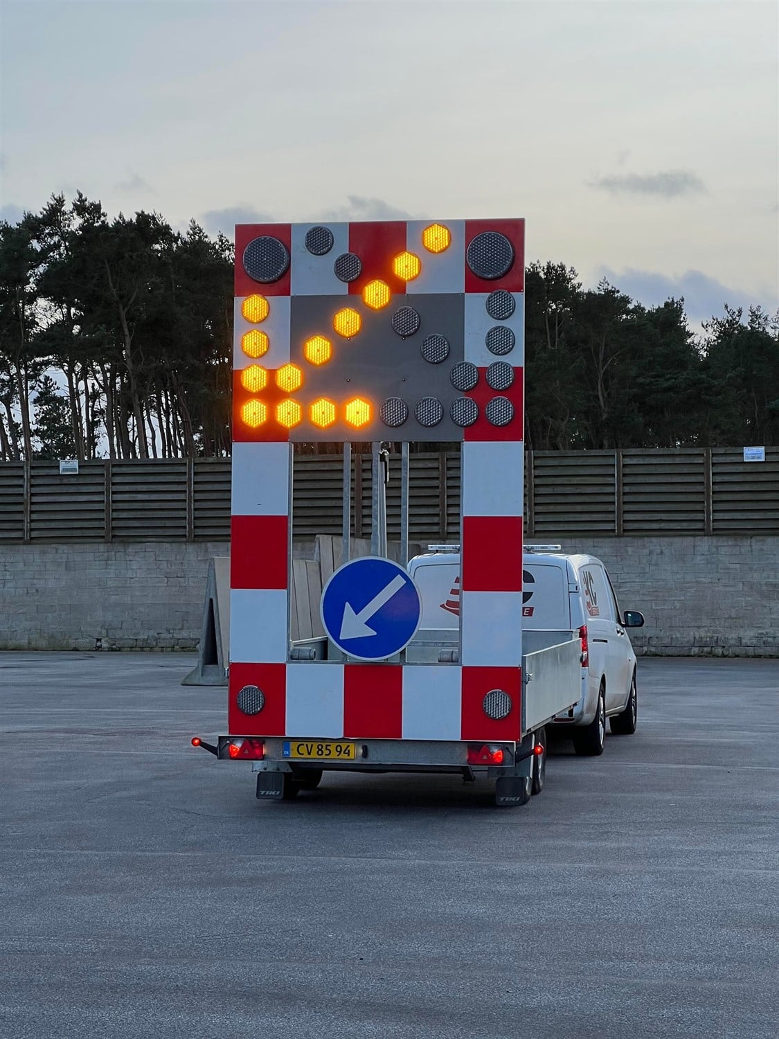 En alsidig tavlevogn til skiltning på både motorvej, landevej m.fl i forbindelse med vejarbejde.